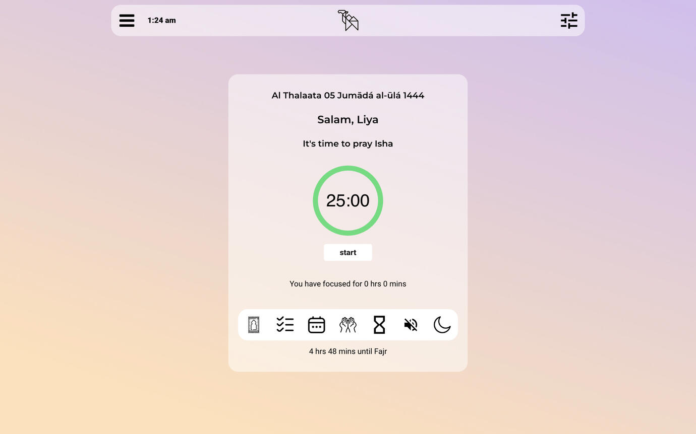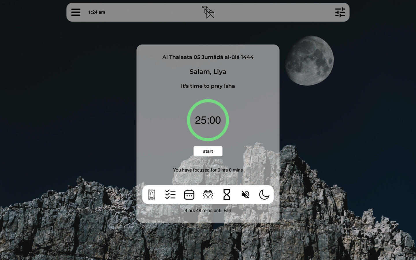 Salah is the key to success. Pray consistently with the daily salah tracker and on-screen prayer reminders.