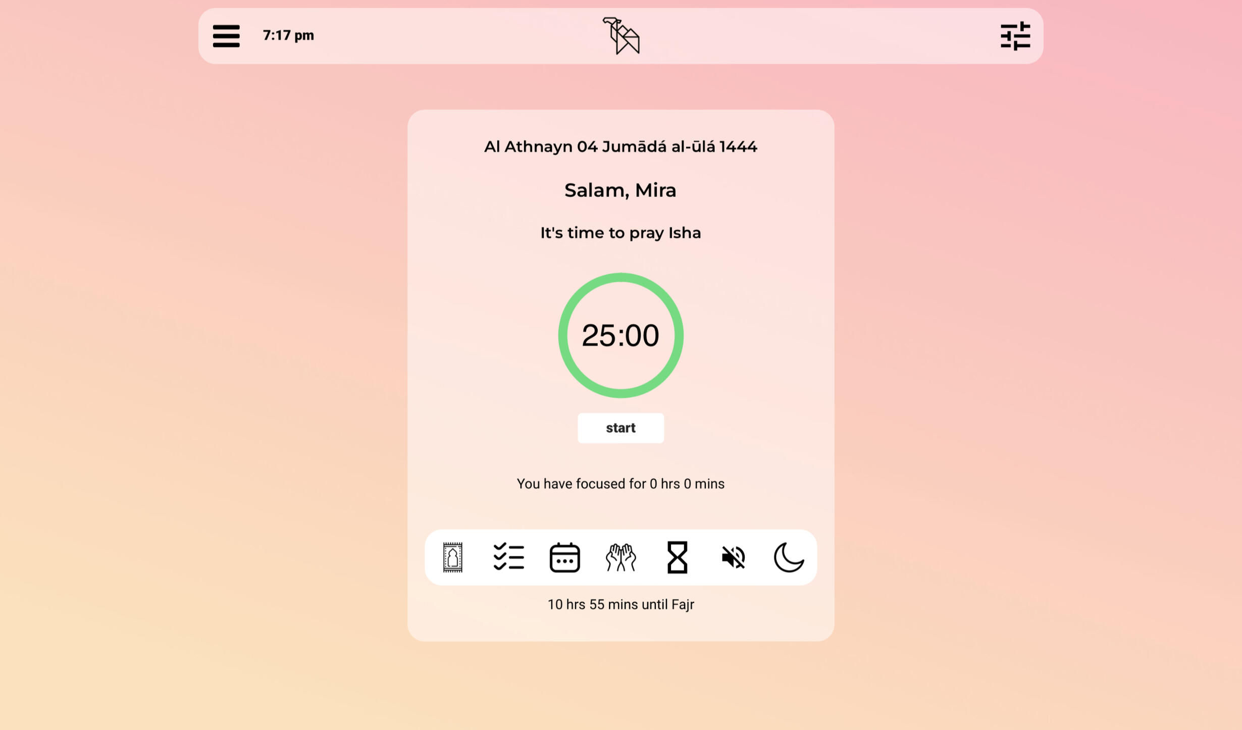 Salah is the key to success. Pray consistently with the daily salah tracker and on-screen prayer reminders.